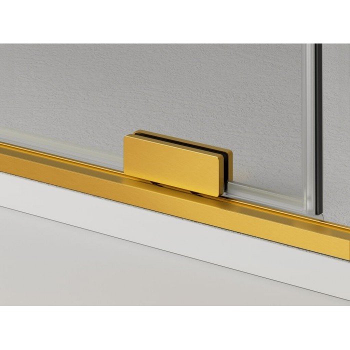 El perfil de aluminio en acabado oro cepillado aporta un aire sofisticado y lujoso al baño, integrándose perfectamente en espacios que buscan un estilo moderno y refinado. Este acabado cálido añade un toque exclusivo y diferencial, convirtiendo la mampara en un elemento de diseño destacado. La estructura incorpora un perfil inferior que asegura la estabilidad del conjunto, mientras que la ausencia de perfil superior contribuye a un diseño más limpio y minimalista, permitiendo una mayor sensación de amplitud visual. Una barra guiadora de alta calidad acompaña a la puerta corredera, garantizando un deslizamiento suave y silencioso. Los rodamientos, visibles en la parte inferior, añaden un detalle estético y aseguran la durabilidad del mecanismo de la puerta. Además, esta mampara es reversible, lo que permite instalar el panel fijo tanto a la izquierda como a la derecha, según las necesidades del espacio y la configuración del baño.