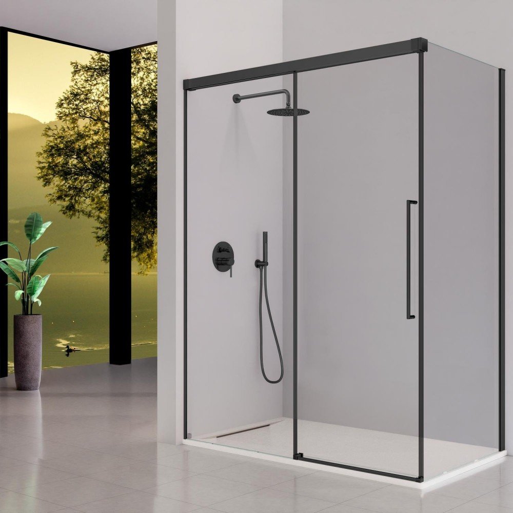 Mampara de Ducha PAVÍA - Fijo + Puerta Corredera más lateral fijo (Negro mate)