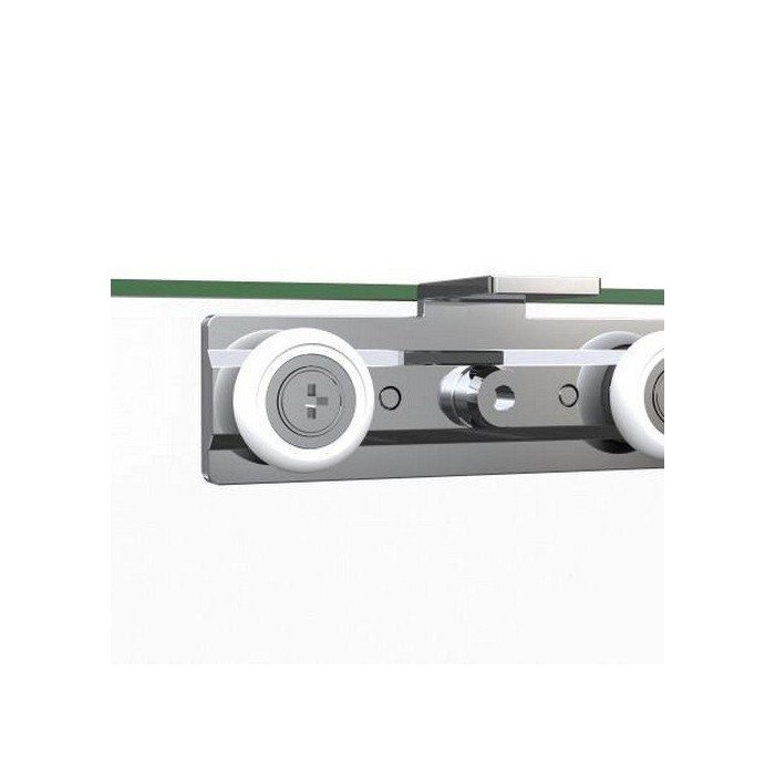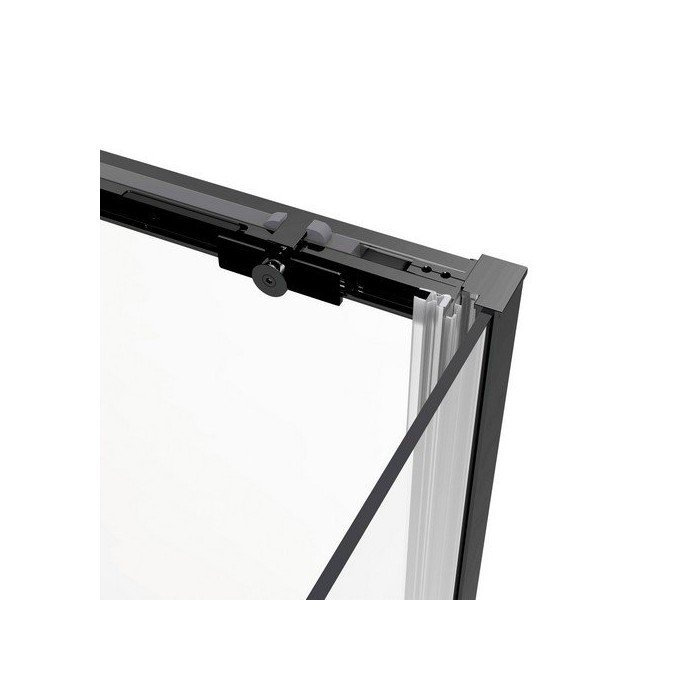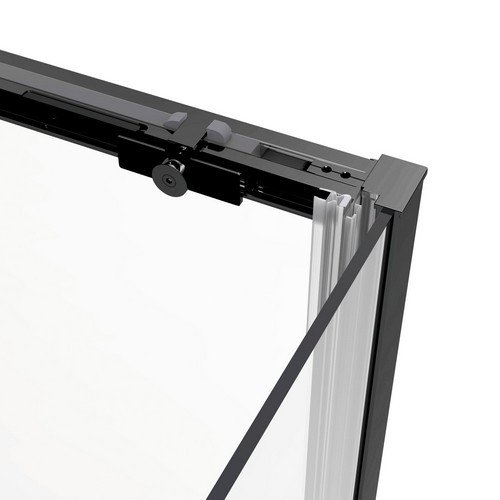 Modelo: Twenty Black. Altura: 1,95 cm. Medidas: Medidas desde 120 x 70 hasta 180 x 90 cm. Composición: Un fijo y una corredera más lun lateral fijo. Vidrio: Templado de seguridad transparente. Grosor: Frontal 6 mm. Fácil limpieza: Tratamiento anti-cal aplicado. Perfiles: De aluminio anonizado. Color: Negro mate. Cierre: Amortiguado. Perfil inferior: Sin perfil inferior. Rodamientos: Superiores y regulables.