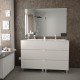 Mueble de baño Lans en blanco brillo, tiene 6 cajones con uñero, con patas y diseño elegante.