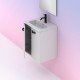 Mueble de baño reducido en color blanco brillo suspendido, con 2 cajones modelo Aneko, espejo incluido en este modelo y auxiliar opcional.