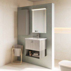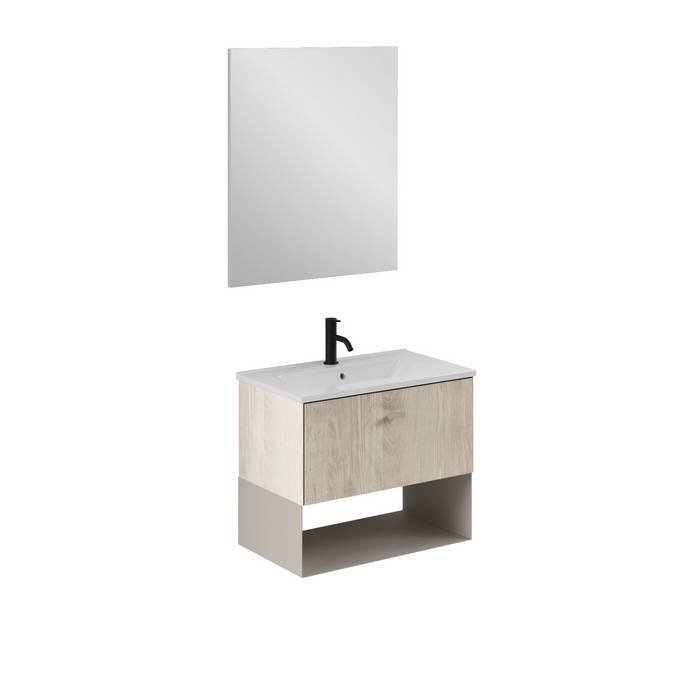 Conjunto compuesto de mueble más lavabo cerámico de 1 cajón y 1 hueco, no incluido espejo ni auxiliar, que puede seleccionar en opcionales, modelo Mei.