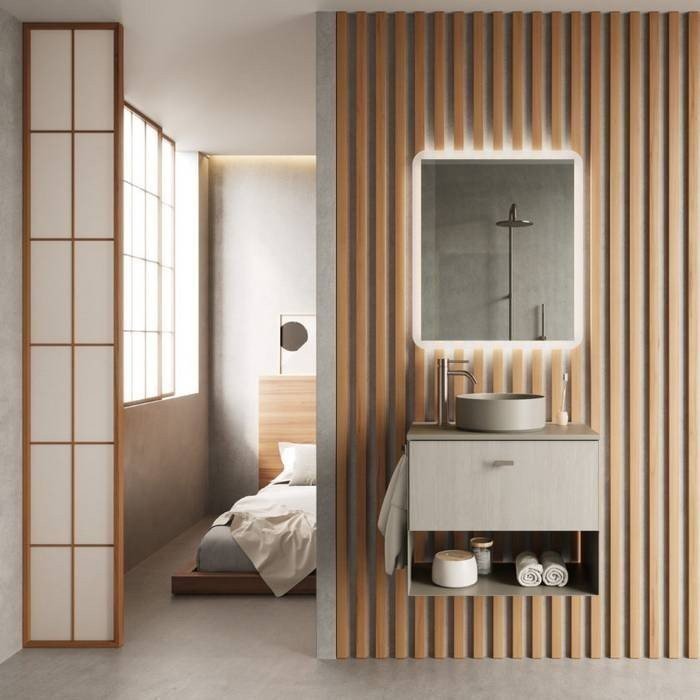 Mueble de baño 1 cajón y 1 hueco roble blanco Mei top Amizuva