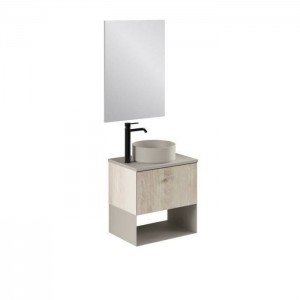 Conjunto compuesto de mueble más lavabo cerámico de 1 cajón y 1 hueco, no incluido espejo ni auxiliar, que puede seleccionar en opcionales, modelo Mei top.