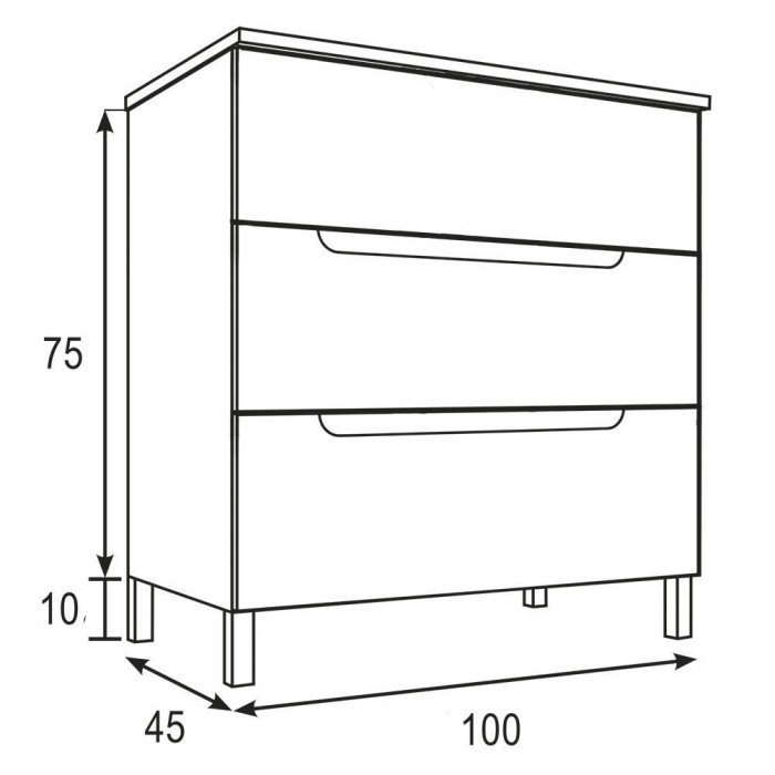Mueble + lavabo vision 100 moka 3 cajones con patas