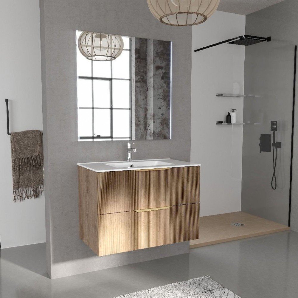 Mueble de baño disponible en tres anchos, 60 80 y 100 cm, con su lavabo incluido de cerámica blanco, se venden por separado grifo y espejo.