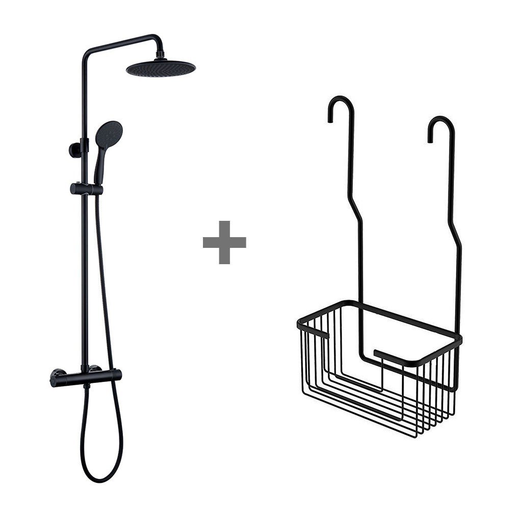- - Columna de ducha termostática redonda completa - Cesta portageles de ducha