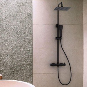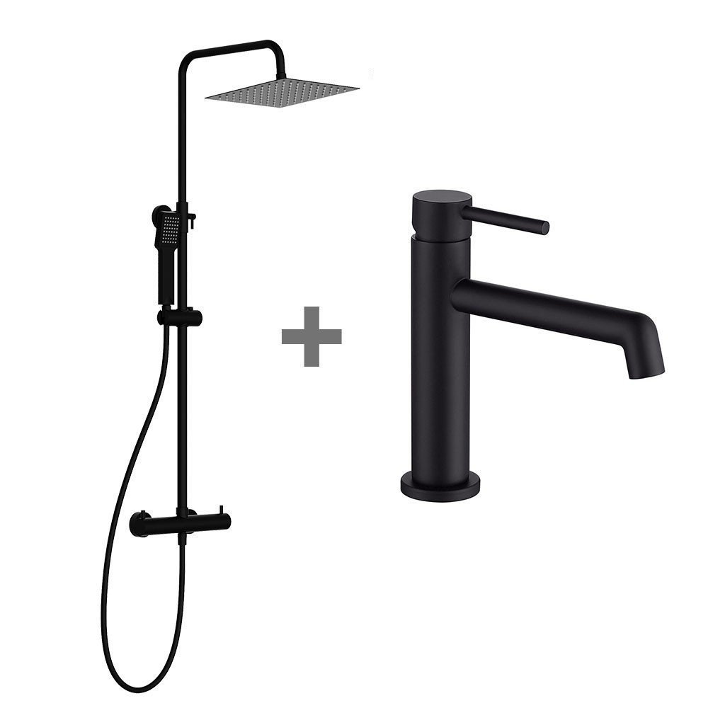 Pack columna y grifo monomando OSLO redonda acabado Negro mate mate fabricado en latón