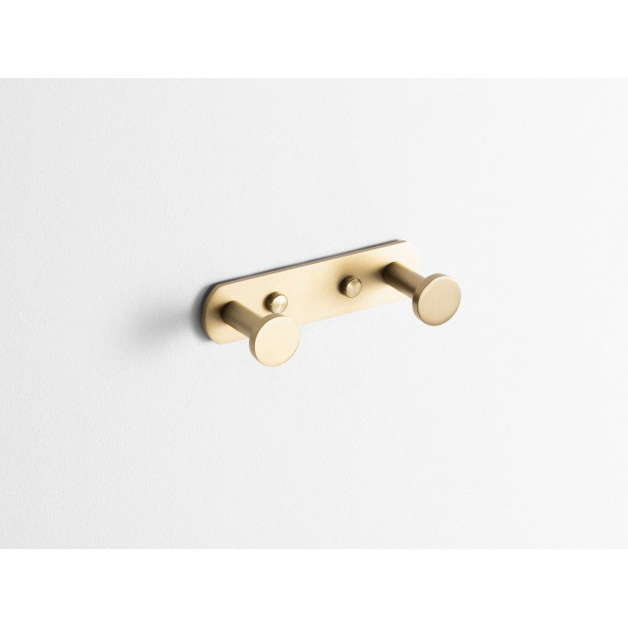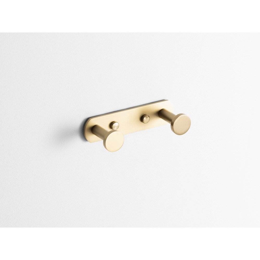 Percha doble - oro cepillado. Este accesorio es ideal para el cuarto de baño y combina diseño y funcionalidad.