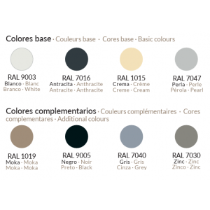 En cuanto a rejillas, puede elegirse rejilla de serie o rejilla opcional (en inox o pintada), suministrándose la rejilla opcional del mismo color del plato.