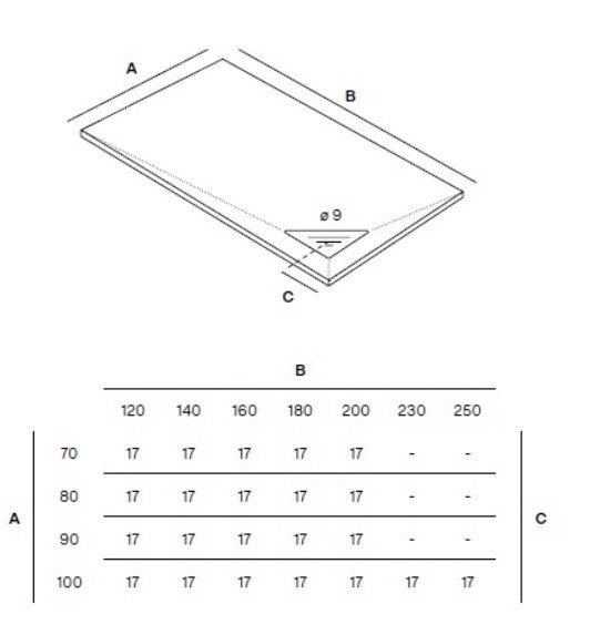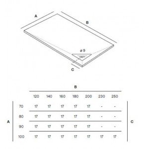 Modelo: Corner. Medidas: Desde 120 x 70 hasta 200 x 100 cm. Grosor: 3 cm. Material: De resina con carga mineral. Limpieza: De fácil limpieza. Antideslizante: Clase 3. Textura: Pizarra. Rejilla: Incluida integrada. Colores: 15 colores diferentes. Válvula: Incluida. Fabricación: Este plato se fabrica bajo pedido, no admiten devoluciones.