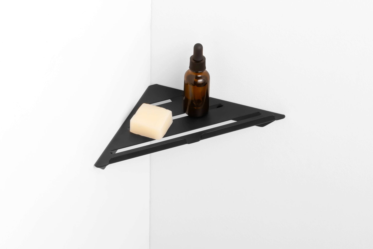 Repisa esquinera de ducha - negro mate. Este accesorio es ideal para el cuarto de baño y combina diseño y funcionalidad. Más información
