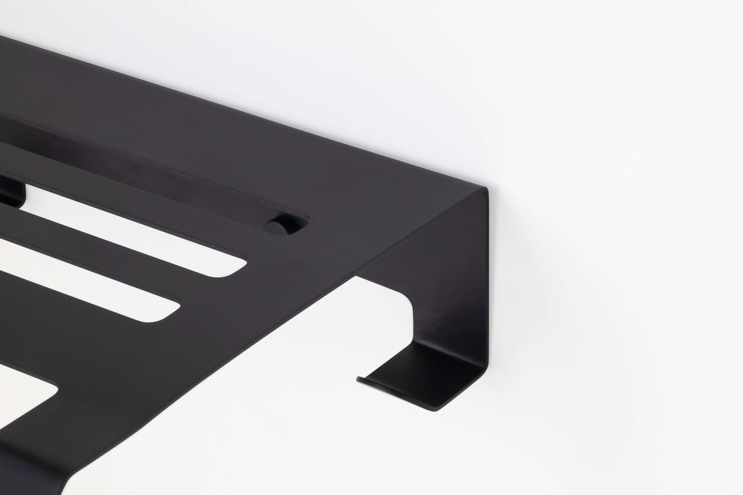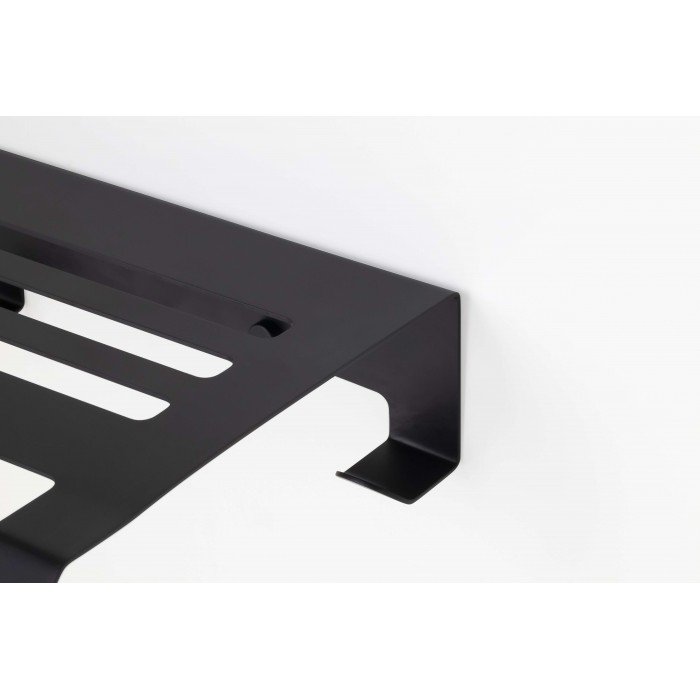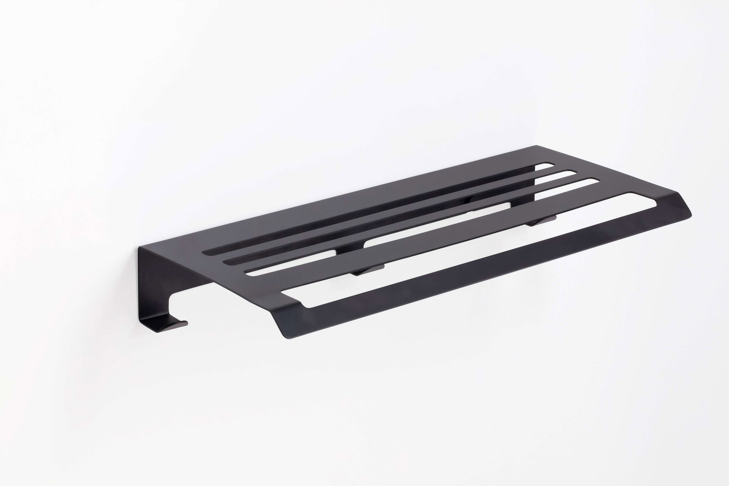 Toallero repisa con perchas - negro mate. Este accesorio es ideal para el cuarto de baño y combina diseño y funcionalidad. Más información