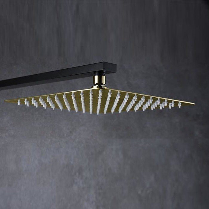Rociador para la ducha de 25 x 25 cm, extraplano en color oro.
