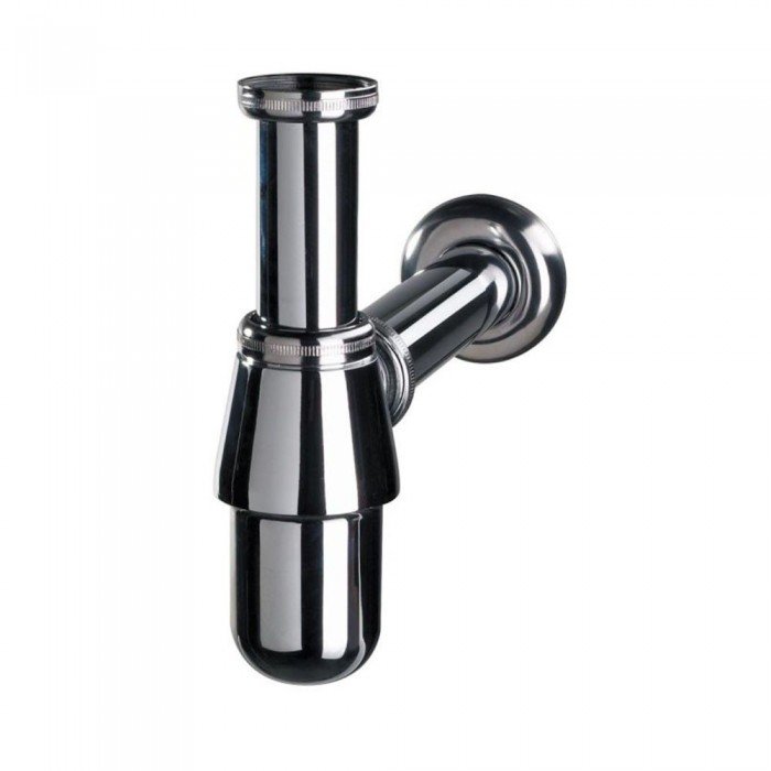 Sifon de Desagüe BOTELLA redondo acabado Plata brillo fabricado en latón