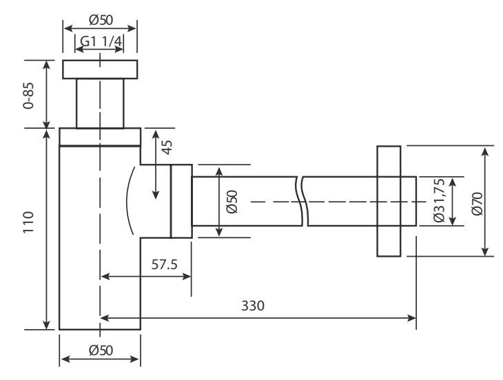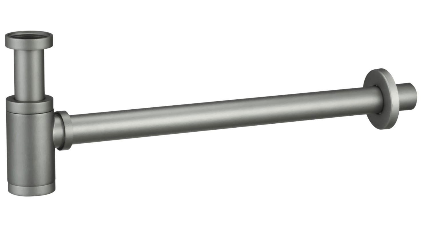 Sifón visto redondo gris mate desmontable, fácil limpieza.